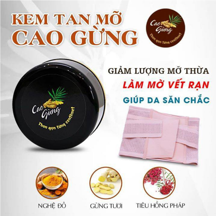 Sự kết hợp tinh tế giữa cao gừng tươi, tinh bột nghệ đỏ, tiêu hồng pháp tất cả tạo nên hỗn hợp CAO GỪNG dạng gel giúp đánh tan lớp mỡ thừa ở vùng bụng, eo, đùi,… và cải thiện nhanh chóng vùng da bị rạn gây mất thẩm mỹ cho phụ nữ sau sinh.
