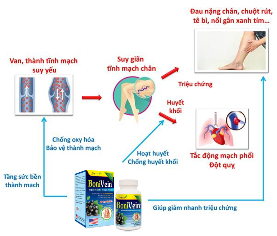 Căn bệnh Suy giãn tĩnh mạch là bệnh lý phổ biến thường thấy ở người già. Hiện nay có nhiều giải pháp để khắc phục tình trạng này, 1 trong số đó là sử dụng viên uống Bonivein USA