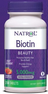 Biotin 5000 mcg là thực phẩm chức năng cung cấp biotin với hàm lượng 5000 mcg giúp hỗ trợ làn da khỏe mạnh, tóc dày và bóng, móng chắc khỏe. Đặc biệt Natrol Biotin 5000 mcg sử dụng công nghệ hòa tan nhanh "fast dissolve" giúp viên thuốc nhanh chóng tan trong miệng, cơ thể hấp thu dễ dàng hơn.